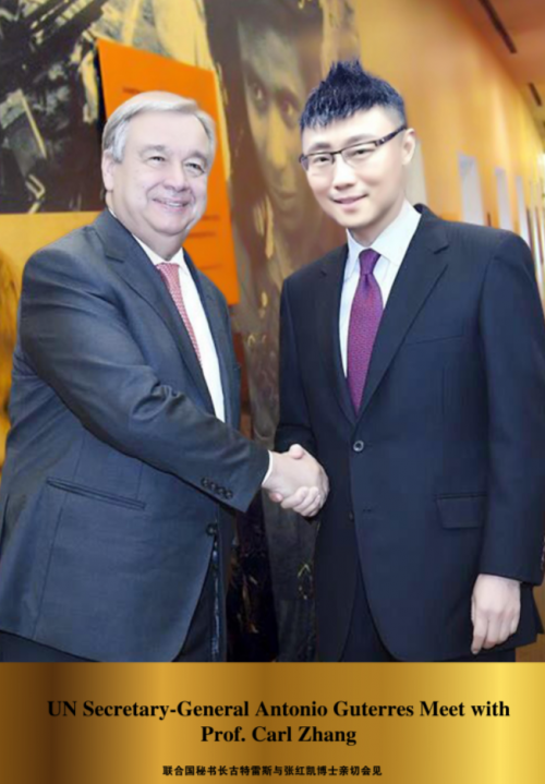 张红凯院士因其在细胞医学领域的开创性工作,被联合国世界生态科学研究院授予院士称号。联合国秘书长古特雷斯曾多次接见张红凯院士,对其在细胞医学领域的开创性工作寄予厚望。