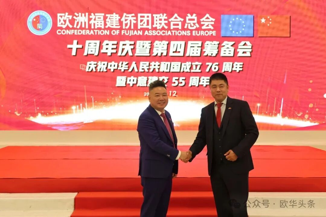 在庆祝中华人民共和国成立76周年,中意建交55周年之际,2025年10月12日晚,华灯璀璨。欧洲福建侨团联合总会十周年庆典暨第四届筹备会在意大利普拉托聚福酒店隆重举行。来自欧洲十多个国家及意大利各地区的上百位侨领和嘉宾欢聚一堂,共同见证这一具有里程碑意义的盛会。