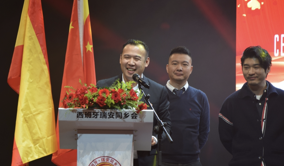 (图为西班牙瑞安同乡会第五届会长杨永典致辞 摄影/乔伊)