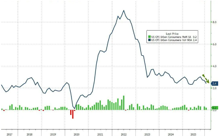 2月13日,美国1月CPI环比增长0.2%,预估为增长0.3%,前值为增长0.3%。1月CPI同比增长2.4%,预估为增长2.5%,前值为增长2.7%。 美国1月核心CPI环比增长0.3%,预估增长0.3%,前值增长0.2%。美国