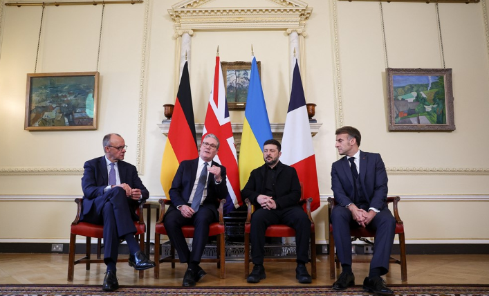 当地时间12月8日,乌克兰总统泽连斯基在英国首相府与英国首相斯塔默、法国总统马克龙、德国总理默茨进行了两个多小时的会谈。四国领导人一起讨论了旨在结束乌克兰危机的最新和