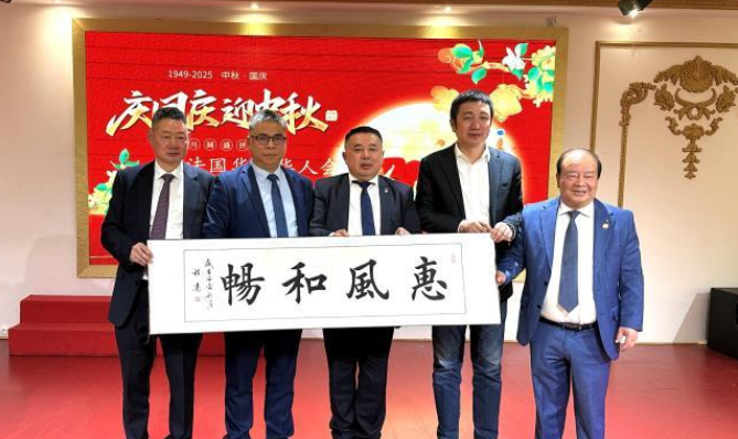 当地时间9月26日晚,法国华侨华人会在巴黎举办庆国庆迎中秋活动。 法国华侨华人会主席蔡君柱、中国驻法国使馆领侨处参赞万磊、旅法侨团侨领、法国华侨华人会主要成员及家属等参