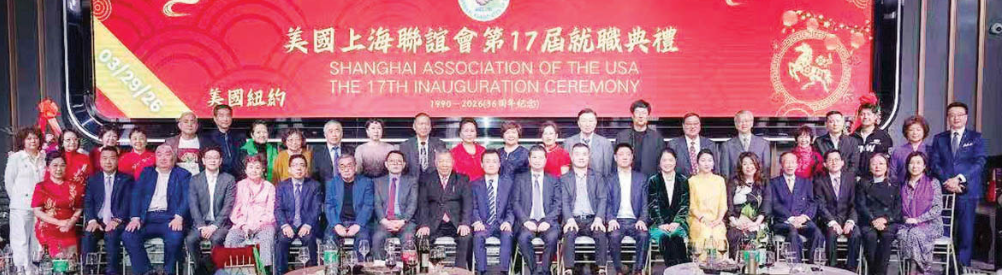 美国上海联谊会第17届就职典礼日前在法拉盛举行。中国驻纽约总领馆侨务组副主任李德、领事王隆浩以及沪籍乡亲逾150人齐聚一堂,共同见证新一届职员履新。 期间,第16届会长吴愷