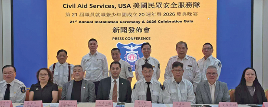 美国民众安全服务队日前宣布将在5月2日于华埠喜运来大酒楼举办第二十一届就职兼少年团二十周年成立典礼庆典暨筹款晚会。 市议员马泰(Christopher Marte)、美国民安队会长林道斌,