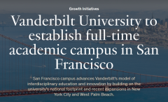 范德堡大学宣布,计划于 2027 年起在旧金山建立全日制学术校区,具体事宜需获得必要的监管批准。 此举是该校在全美办学布局的重大拓展 继近期在纽约市和西棕榈滩扩大办学规模后