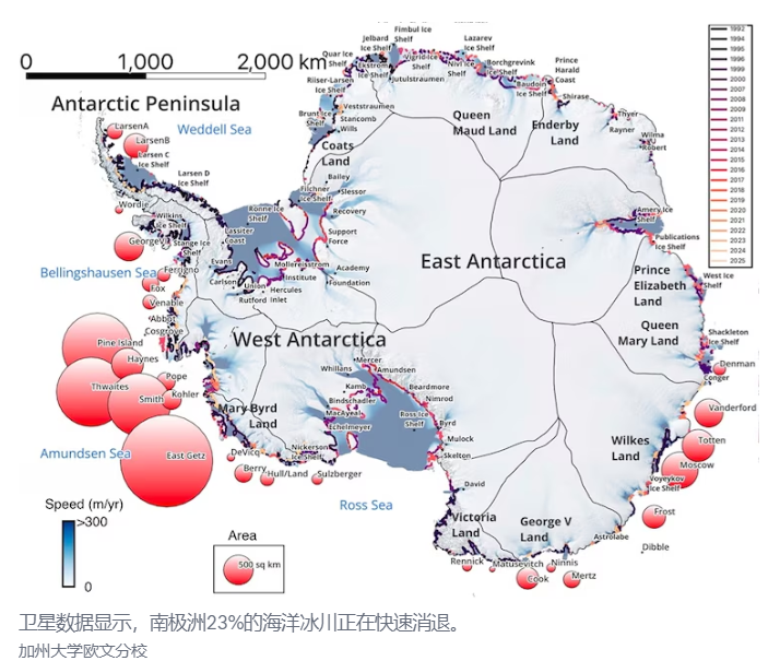 根据一项新的研究,在过去的30年里,南极洲失去的冰足以覆盖洛杉矶市10倍以上的面积。 冰川学家在加州大学欧文分校使用过去三十年的卫星图像来测量南极大陆冰盖的消退。 尽管超
