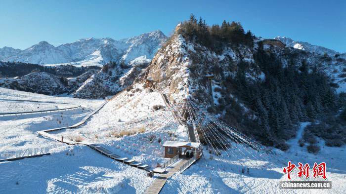 仲冬时节,祁连崖壁间的马蹄石窟群,古窟佛韵与远处银装素裹的山峦交相辉映,雪景如画。位于甘肃省张掖市肃南裕固族自治县祁连山下的马蹄石窟群开凿于十六国北凉时期,距今已有1600多年的历史,由马蹄南寺、马蹄北寺、千佛洞,以及上、中、下观音洞和金塔寺七个部分组成。图为马蹄石窟群银装素裹。