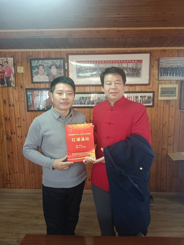 会晤中,詹冬龙向姚继成赠送其主编的红色文化书籍《红潮涌动》,并系统汇报九江市红色文化促进会近两年来的工作成果。