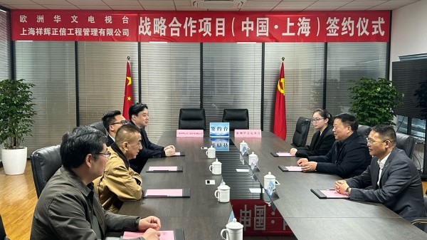 欧洲华文电视台(记者 万瑜)近日,欧洲华文电视台(EZTV)与上海祥辉正信工程管理有限公司战略合作项目签约仪式在上海隆重举行。双方以推动中华文化出海、筑牢文化自信、夯实文化根基为核心目标,达成深度战略合作,共同打造国际文化传播新平台。