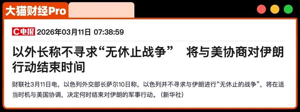 这两天,特朗普松口说,“将在适当时机作出结束对伊朗的军事行动”,以色列的外长说,“不寻求与伊朗进行无休止战争”。