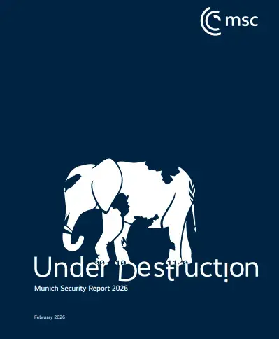 今年的慕尼黑安全会议报告封面就是一头横冲直撞的大象,标题只有四个字——“正遭摧毁”。