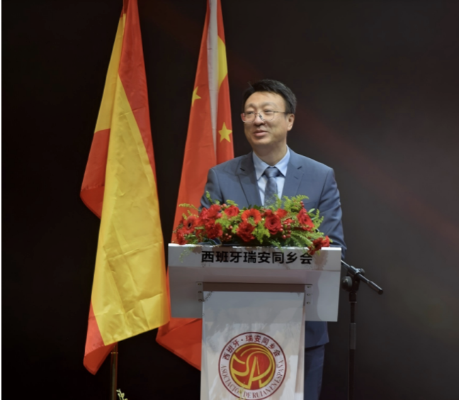 中国驻西班牙大使馆领事参赞梁楠、刘海曦领事、当地政府代表应邀出席典礼并致辞,对西班牙瑞安同乡会过往的工作给予了高度评价,并对新一届理事会的就任表示热烈祝贺。他们充分肯定了同乡会在团结服务侨胞、维护侨胞合法权益、弘扬中华文化、支持家乡建设以及促进中西两国经贸文化交流等方面所发挥的桥梁与纽带作用。
