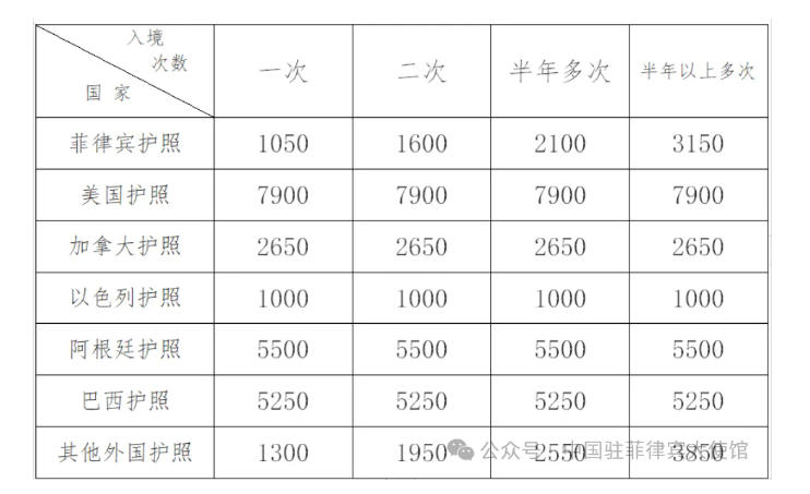 据中国驻菲律宾大使馆微信公众号消息,中国驻菲律宾大使馆签证费调减措施将延续至2026年12月31日。具体费用如下: