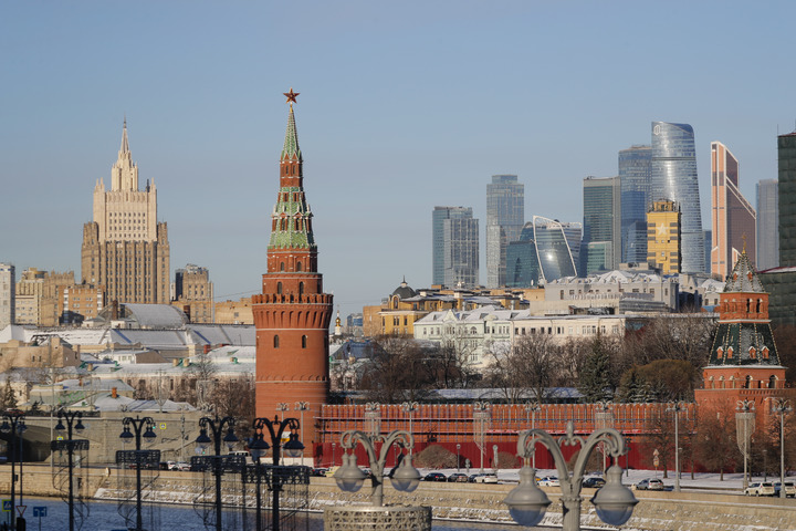 近日,俄罗斯首都莫斯科迎来晴天。这是远眺克里姆林宫一角。(亚历山大摄)