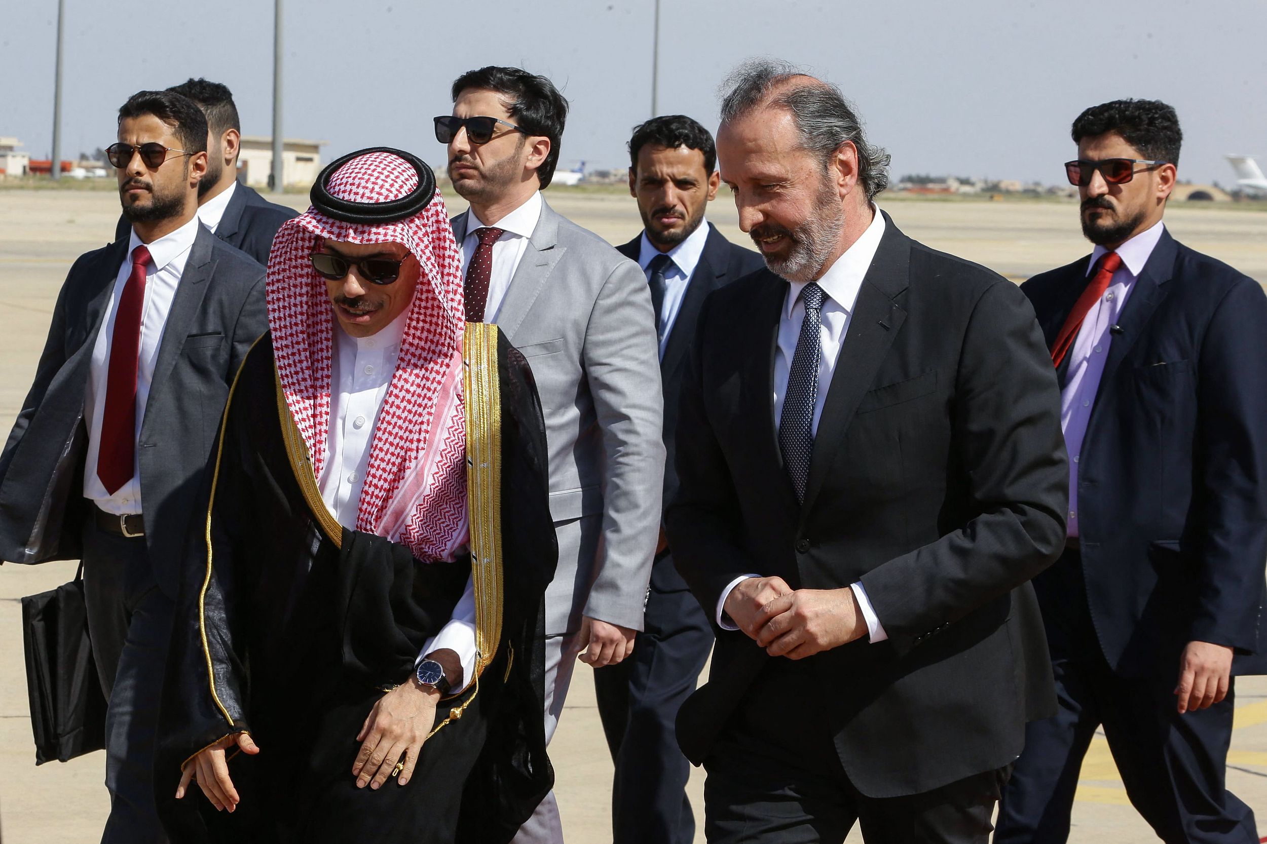 当地时间2023年4月18日,叙利亚大马士革,沙特外交大臣费萨尔·本·法尔汉抵达叙利亚首都大马士革。 视觉中国 图