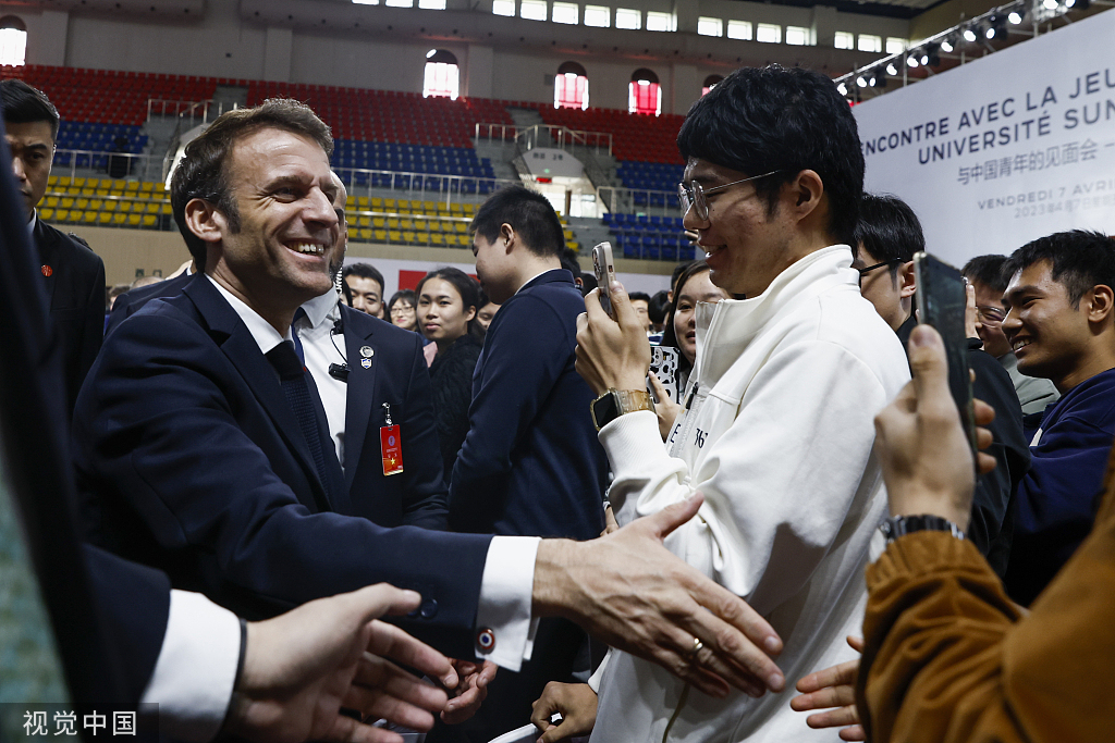 2023年4月7日,广州,法国总统马克龙访问中山大学。视觉中国 图