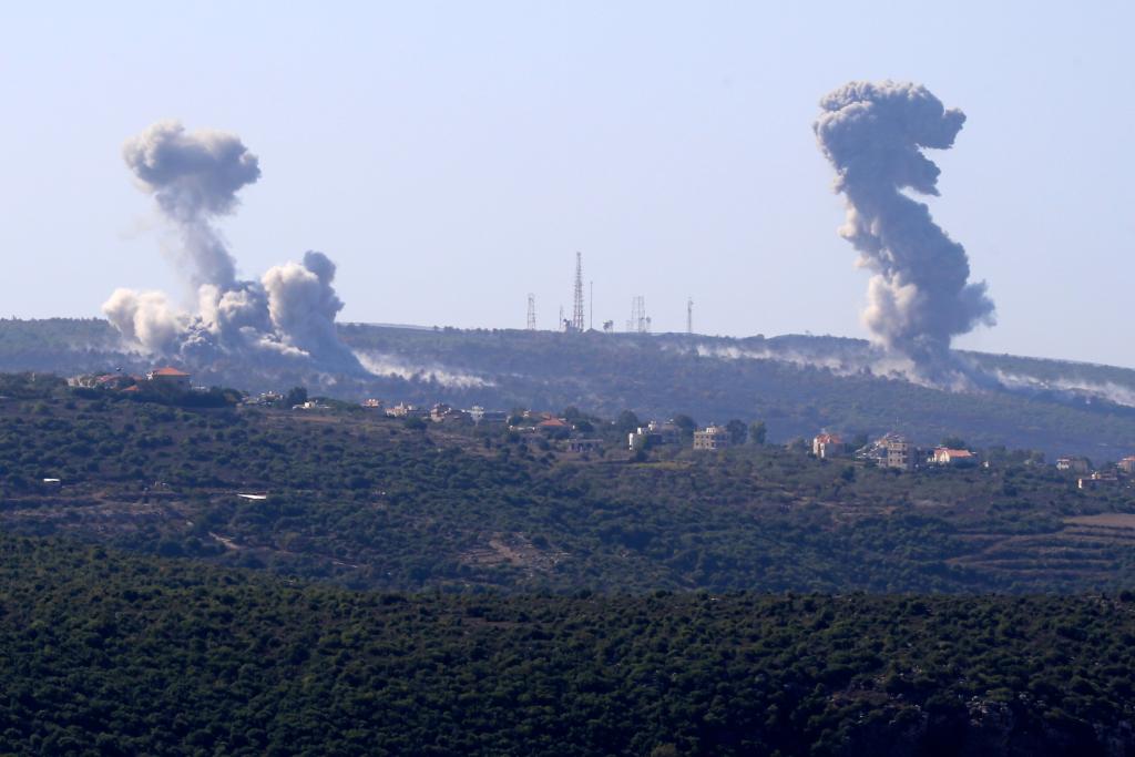 这张11月4日在黎巴嫩南部泰尔哈尔法镇拍摄的照片显示,纳古拉山遭以色列战机空袭后冒出浓烟。新华社发(阿里·哈希绍 摄)