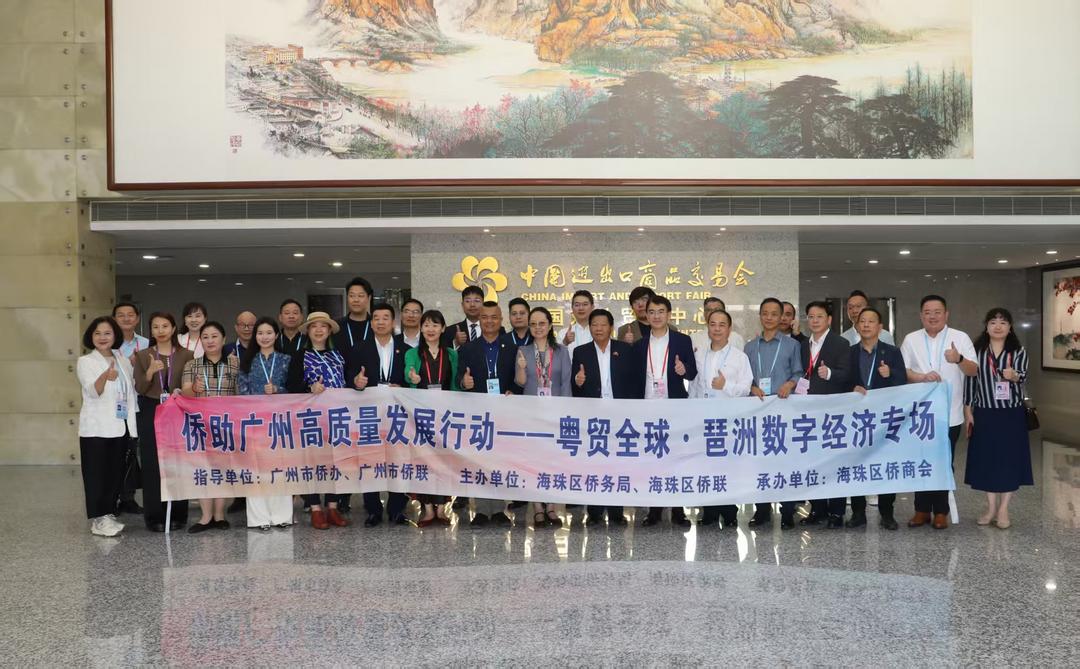 2025年4月17日下午,“侨助广州高质量发展行动——粤贸全球·琶洲数字经济专场”活动在广州市海珠区成功举行。本次活动由广州市人民政府侨务办公室、广州市归国华侨联合会指导,海珠区侨务局、海珠区侨联共同主办,海珠区侨商会协办,来自美国、捷克、新西兰、巴拿马等10多个国家的侨领代表,以及市、区侨商会代表共40多位嘉宾出席了活动。