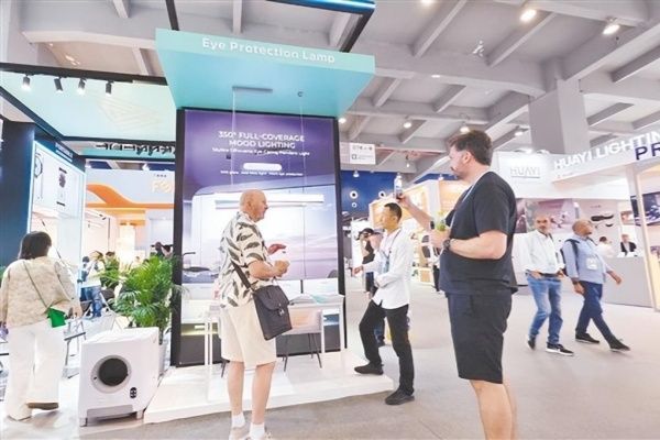 已经是广交会“老朋友”的广东小崧科技股份有限公司(以下简称“小崧股份”)的品牌展位上,一款具备感应变色的餐厅吊灯产品占据“C位”,不少外商被其炫酷的变色模式所吸引,在了解其性能后,表现出了极大的兴趣。