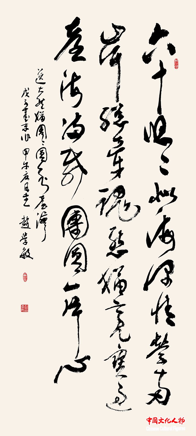 赵学敏,著名书法家,全国政协书画室副主任,中国国家画院研究员,中国书协第四、五、六届理事等。书法作品获全国书法大赛一等奖、全国书法兰亭奖二等奖等。出版发行《赵学敏书法选》《赵学敏书道德经》《奥运赋》和《书谱》《二十四节气》等。曾负责给台湾、香港选送大熊猫,推动了两岸文化交流,出版发行《两岸熊猫情诗书》《国宝大熊猫团团圆圆的故事》等。参与二十四节气申遗工作,编著出版《中华二十四节气诗书》等。