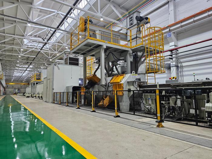 钢轨胶接绝缘接头的作用是在接头处把钢轨与钢轨、钢轨与道岔连接成具有与钢轨一样的整体性,以承受车轮通过钢轨接头处所产生的冲击力、纵向力、横向水平力及因温度变化钢轨所产生的温度附加力等,是轨道电路的重要组成部分,广泛应用于铁路道岔区间和无缝线路。“这条集成胶接面预处理、接头找正、温控等核心技术的生产线,依托中铁宝桥近60年的道岔制造经验,实现了核心技术的自主突破。通过自动找正装卡技术,钢轨对正精度达到0.1mm/m;精准温控系统将温度波动控制在±3℃范围内,使产品具备高平直度与胶层均匀性,完美匹配铁路高安全、长寿命运营需求,是公司培育和发展新质生产力的新成果。”中铁宝桥道岔分公司负责人李毅介绍。?