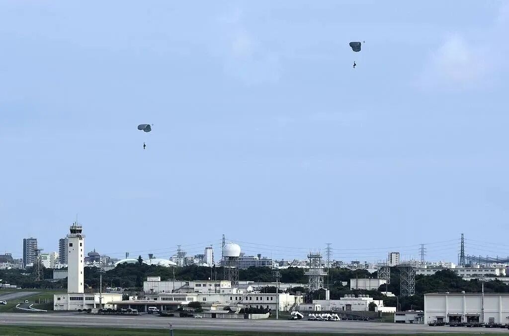 当地时间2025年10月23日,美国空军人员在嘉手纳空军基地进行跳伞训练。图源:视觉中国。