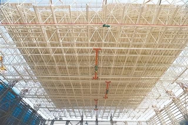 逾千吨“钢铁拼图”高空精准安装