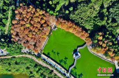 12月29日,空中俯瞰福州国家森林公园换装变红的水杉林。红透的水杉林如天然调色盘,绘就冬日别致风光。(无人机照片)中新社记者 王东明 摄 12月29日,空中俯瞰福州国家森林公园