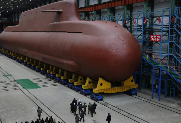 总台记者当地时间25日获悉,朝鲜劳动党总书记、国务委员长金正恩现场指导了8700吨级核动力战略导弹潜艇建造工作。 金正恩视察核潜艇建造现场,并听取了有关其进展情况的汇报。