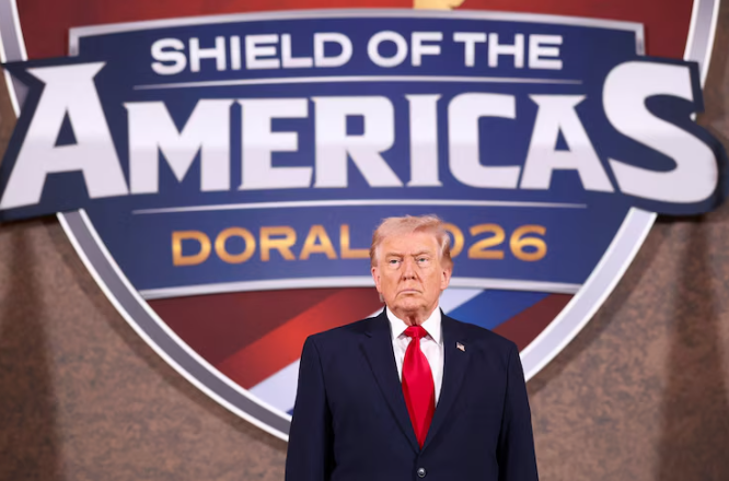 美国总统唐纳德特朗普(Donald Trump)周六上午在佛罗里达州多拉尔(Doral)举行的美洲之盾(Shield of the Americas)峰会上,与其他十几个国家的领导人一道,吹嘘美国的军事行动,并对拉美对手发