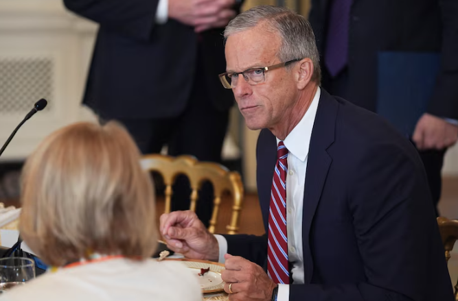 唐纳德特朗普总统周三从白宫返回后又一次呼吁参议院共和党人推翻阻挠议事多数党领袖约翰图恩重申了他的观点参议院共和党人没有足够的票数来改变参议院的规则。 图恩周三被问及