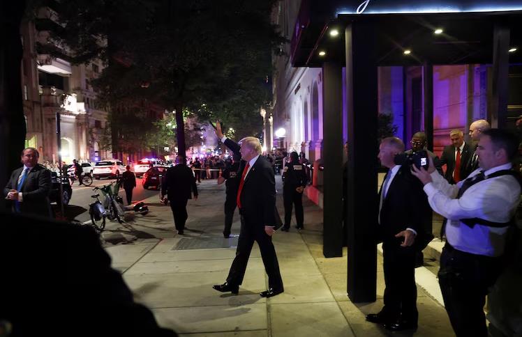反战组织CodePink的活动分子在唐纳德特朗普总统访问乔氏海鲜上等牛排时与他对峙华盛顿特区的石蟹,抗议联邦执法部门和国民警卫队在国家首都的持续使用,以及以色列和哈马斯在加