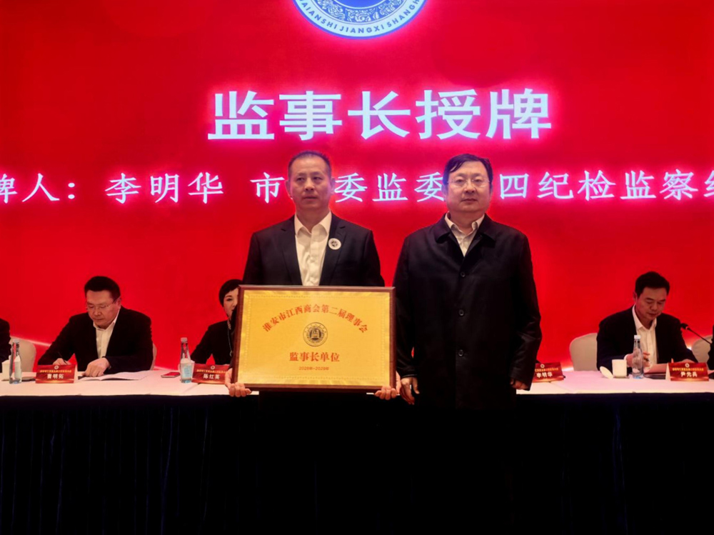 淮安市江西商会第二届理事会会长吴翔为创会会长授牌