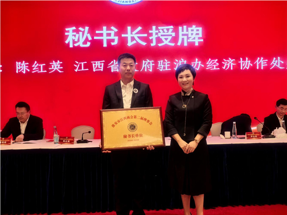 江西省政府驻沪办经济协作处处长、一级调研员陈红英秘书长授牌