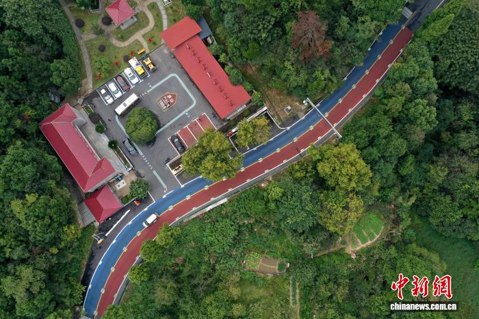 10月16日,航拍江西庐山登山公路旁的三公里服务区。(无人机照片)中新社记者 刘占昆 摄