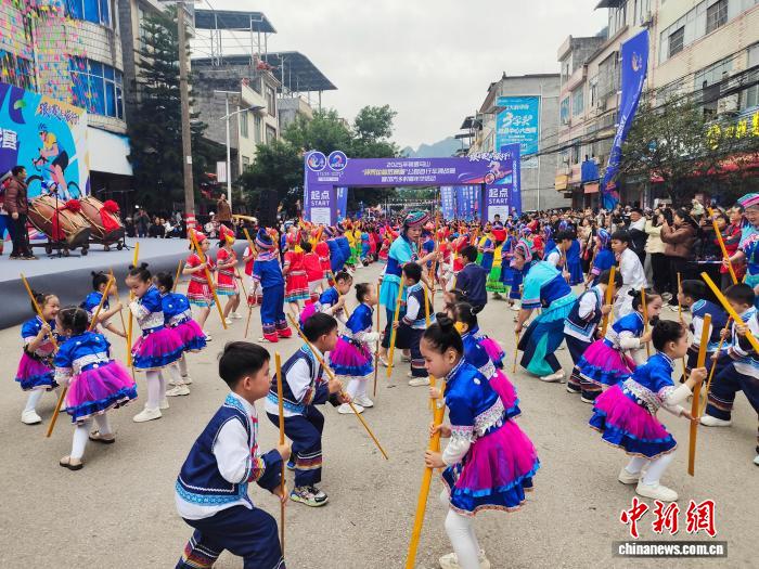 图为壮族打扁担表演现场。中新社记者 黄艳梅 摄