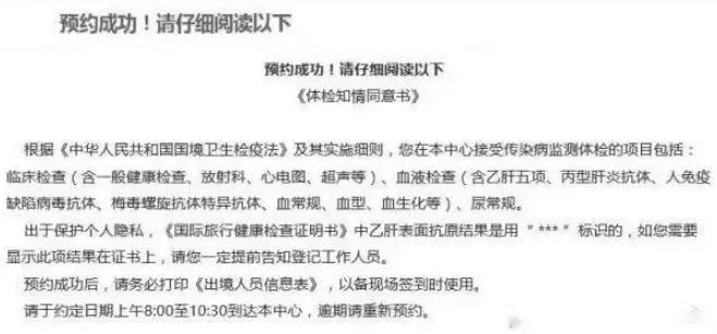 4.预约完成后邮箱会收到预约的确认邮件,按照要求做好准备,带好相关资料,按时前往体检中心进行体检和免疫(如下图)