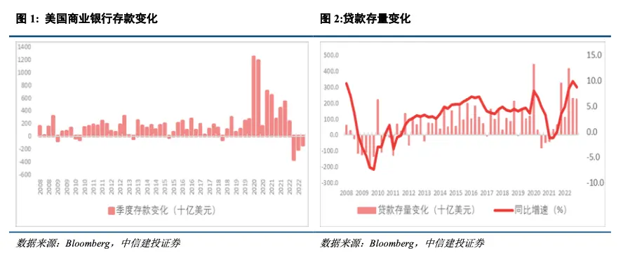 银行贷款方面,当前欧美普遍出现存款流失现象,银行整体资产负债表面临收缩,经济衰退预期和金融市场大幅动荡背景下,银行将继续收紧贷款条件,减少贷款发放或收回贷款,进一步拖累经济,形成恶性循环。