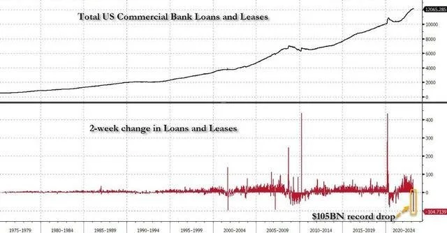 根据美联储的最新数据,截至4月12日当周,美国存款同比下降6%至17.2万亿美元,为近两年来的最低水平,比一年前减少了约1万亿美元。