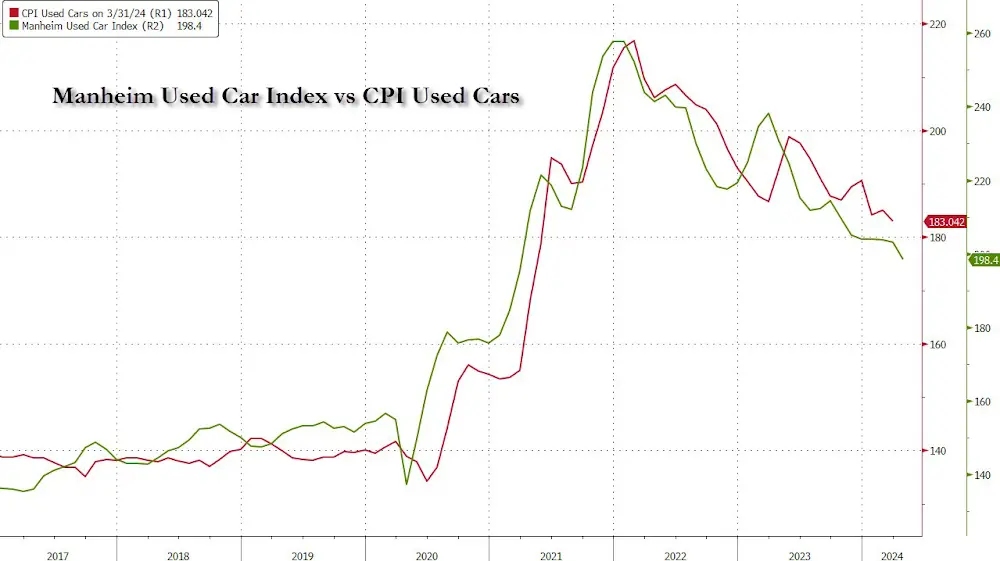 当然,就美国经济而言,二手车价格的大跌至少可能会给通胀方面带来一些好消息:曼海姆二手车价格的下行,应会推动美国CPI二手车分类指数的进一步走低。