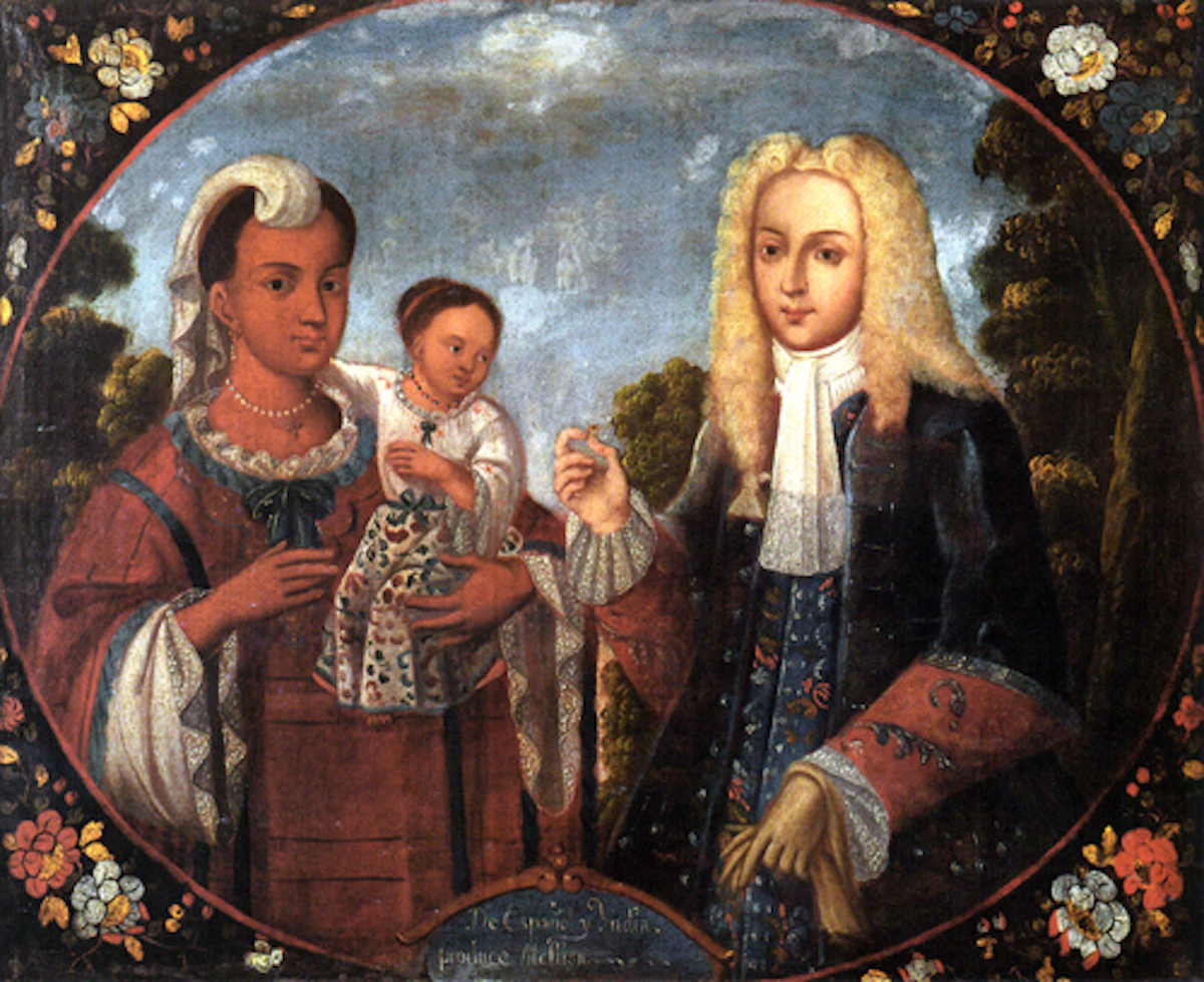 米格尔·卡布雷拉,《西班牙人与印第安女人,创造麦斯蒂索人》,1763年,洛杉矶县立美术馆藏,美国洛杉矶