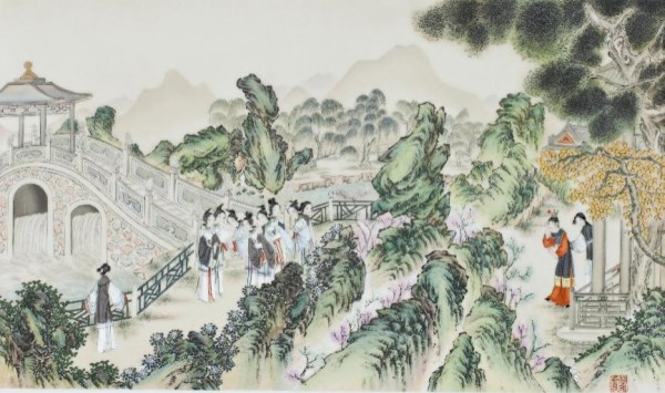 裴永中《瓷绘全本红楼梦》之“贾政游大观园景五”