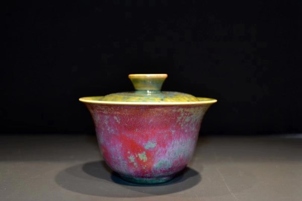 裴永中独立设计的钧瓷创意作品有一壶两杯的《竹纹茶器系列》和古代宫廷使用的茶器《三才盖碗》,造型别致,工艺精湛,用“醉江南”釉烧制而成,色彩温润,呈现出“绵、软、柔、润”的工艺特色和“灵、秀、清、雅”的江南意境,可以感受红绿相掩的自然,可以看到“漫江碧透”的美妙,尤其器物表面呈现出的“炭结晶”状态,更令人怦然心动,爱不释手,“醉江南”系列茶器已然成为了当今茶器中的“翘楚”。(王忠全)
