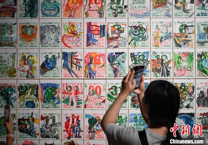 6月5日,基于日历创作的艺术作品吸引参观者。中新社记者 王刚 摄